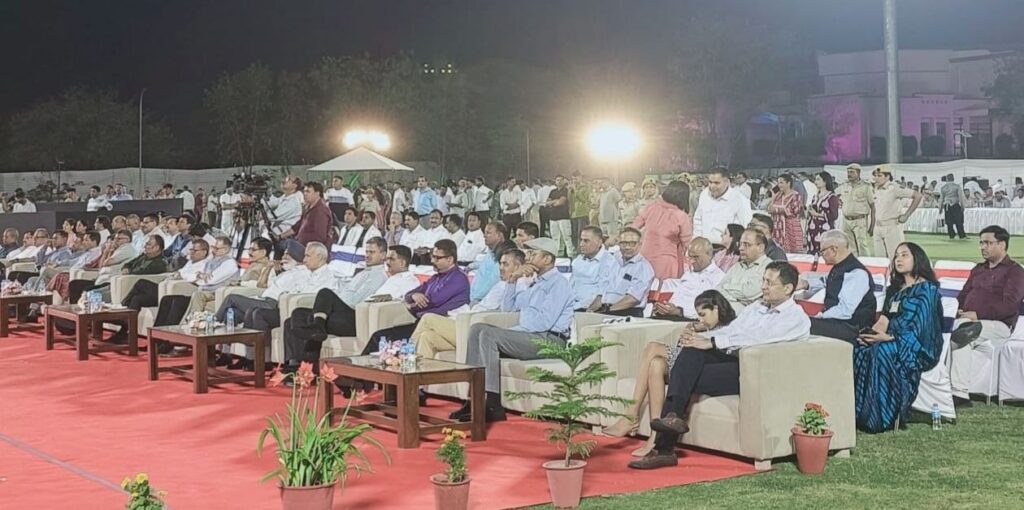 जयपुर। राजस्थान पुलिस के 77वें स्थापना दिवस समारोह के उपलक्ष्य में गुरुवार शाम राजस्थान पुलिस अकादमी के स्टेडियम प्रांगण में एक भव्य और यादगार सांस्कृतिक कार्यक्रम का आयोजन किया गया। सजे-धजे मंच पर प्रस्तुत मनमोहक कार्यक्रमों ने दर्शकों को मंत्रमुग्ध कर दिया और पूरे माहौल को उत्साह व उल्लास से भर दिया।